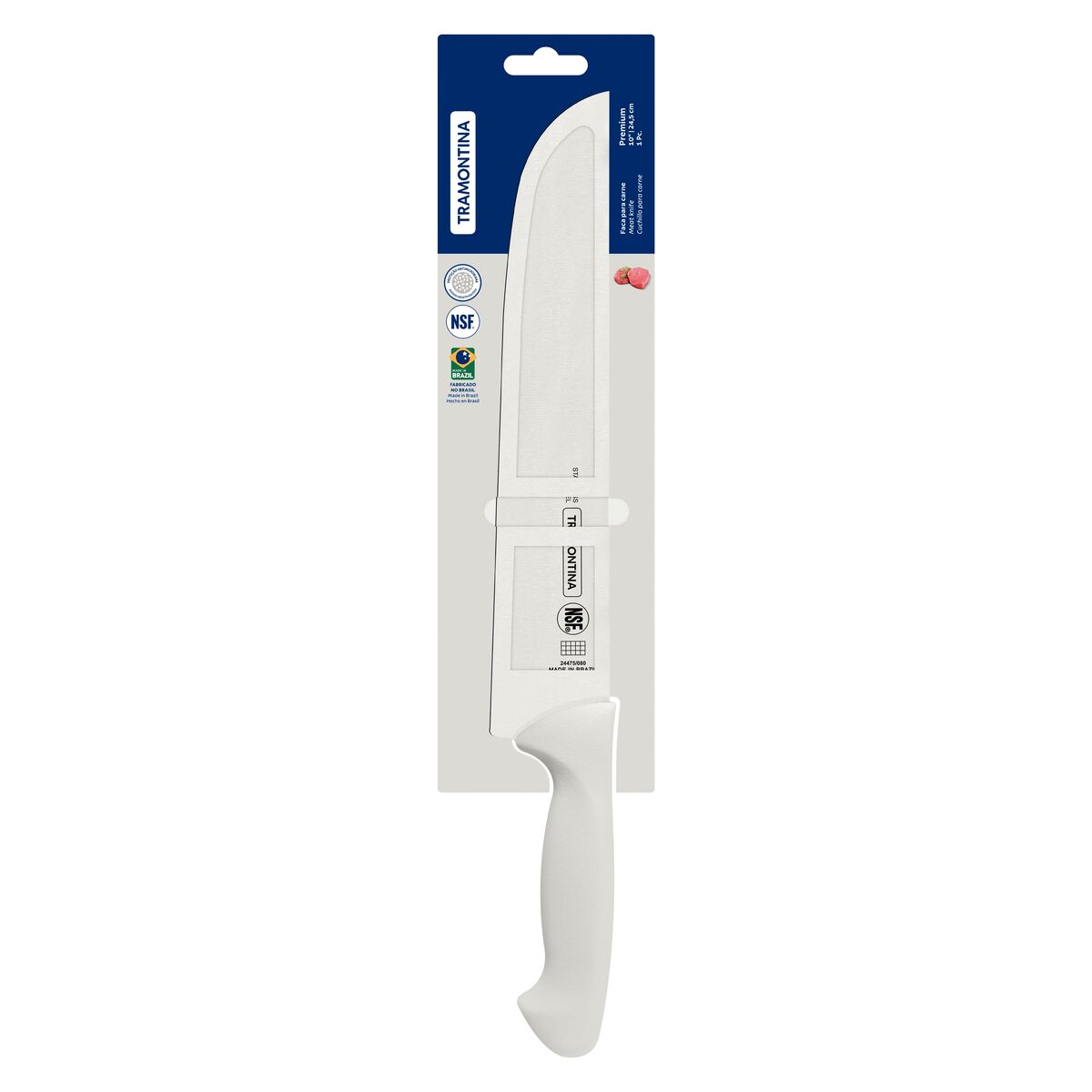 FACA PARA CARNE TRAMONTINA PREMIUM COM LÂMINA DE AÇO INOX E CABO DE POLIPROPILENO BRANCO 10” - 24475180