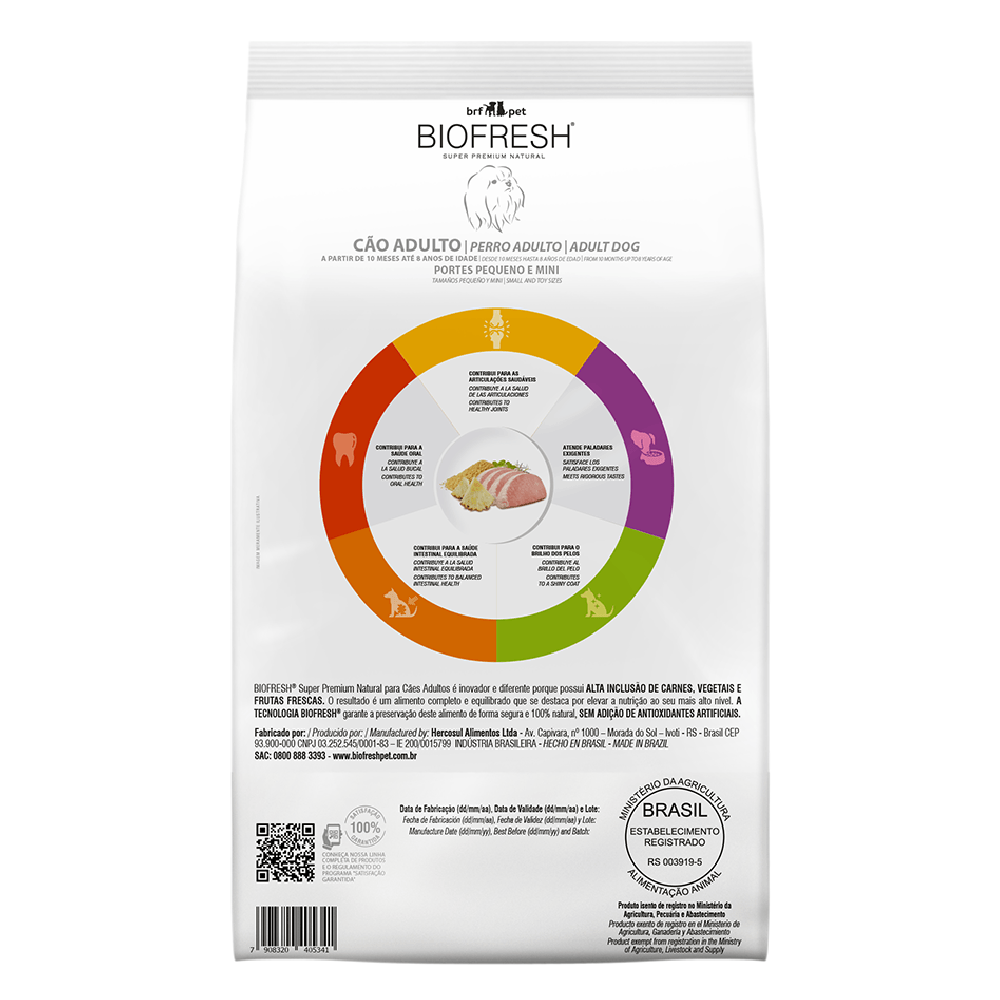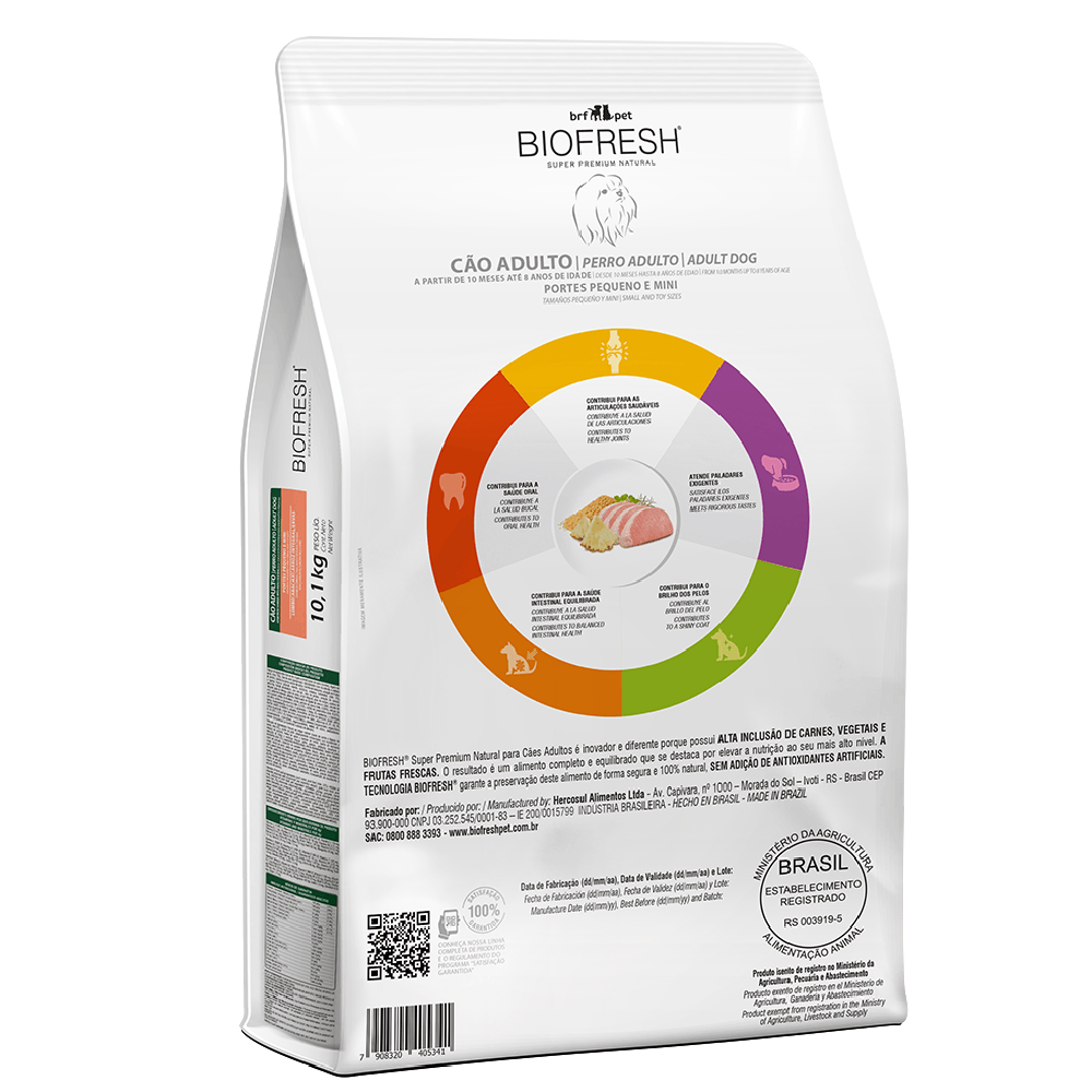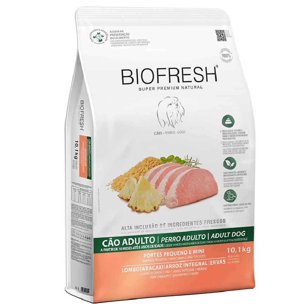 RAÇÃO BIOFRESH CÃES ADULTOS RAÇAS MINIS E PEQUENAS SABOR LOMBO, ABACAXI, ARROZ INTEGRAL E ERVAS 10,1KG