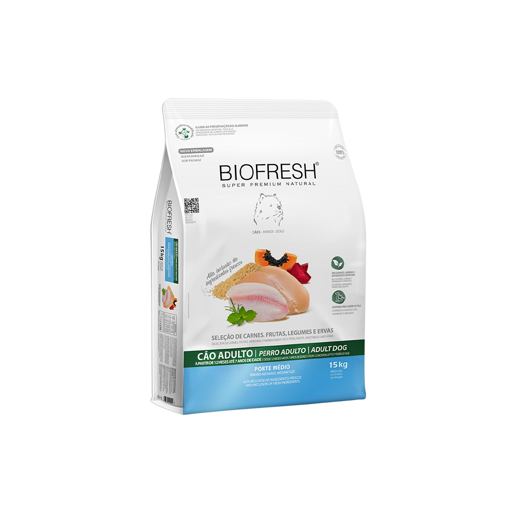 RAÇÃO BIOFRESH SUPER PREMIUM CÃES ADULTOS RAÇAS MÉDIAS 15KG