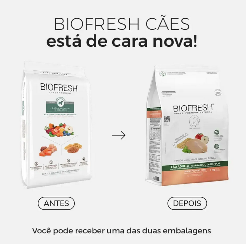 RAÇÃO BIOFRESH SUPER PREMIUM CÃO ADULTO RAÇAS PEQUENAS E MINIS SABOR FRANGO 1KG