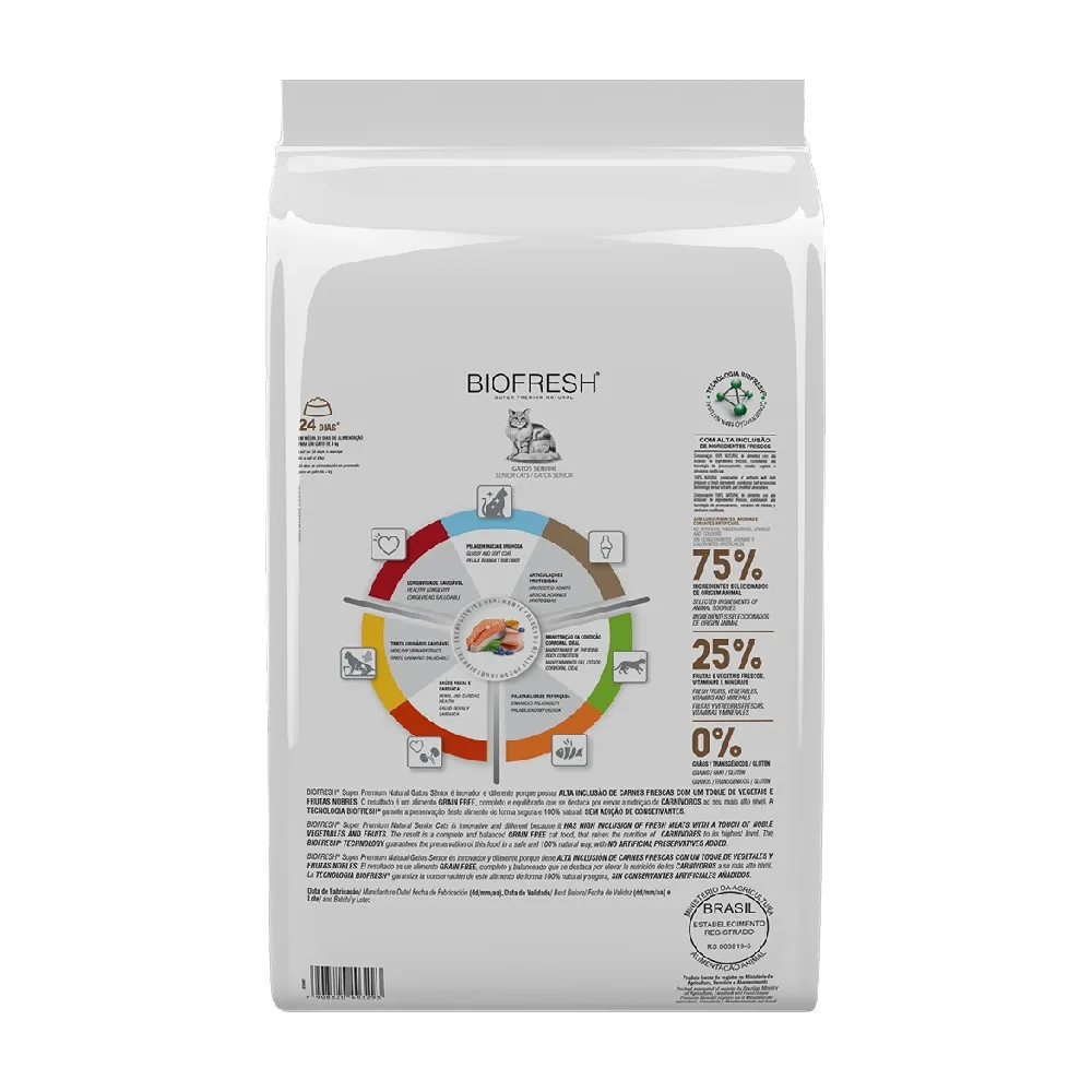 RAÇÃO BIOFRESH SUPER PREMIUM GATOS SÊNIOR PEIXE BRANCO 1,5KG