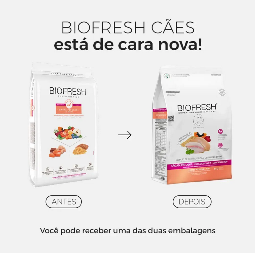 RAÇÃO BIOFRESH SUPER PREMIUM LIGHT CÃES ADULTOS RAÇAS PEQUENAS E MINIS 3KG