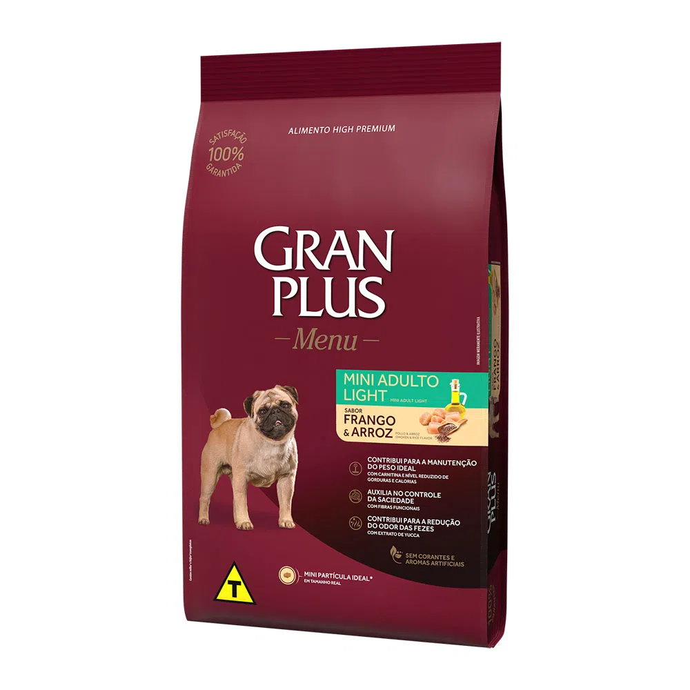 RAÇÃO GRANPLUS MENU CÃO ADULTO LIGHT MINI FRANGO E ARROZ 3KG
