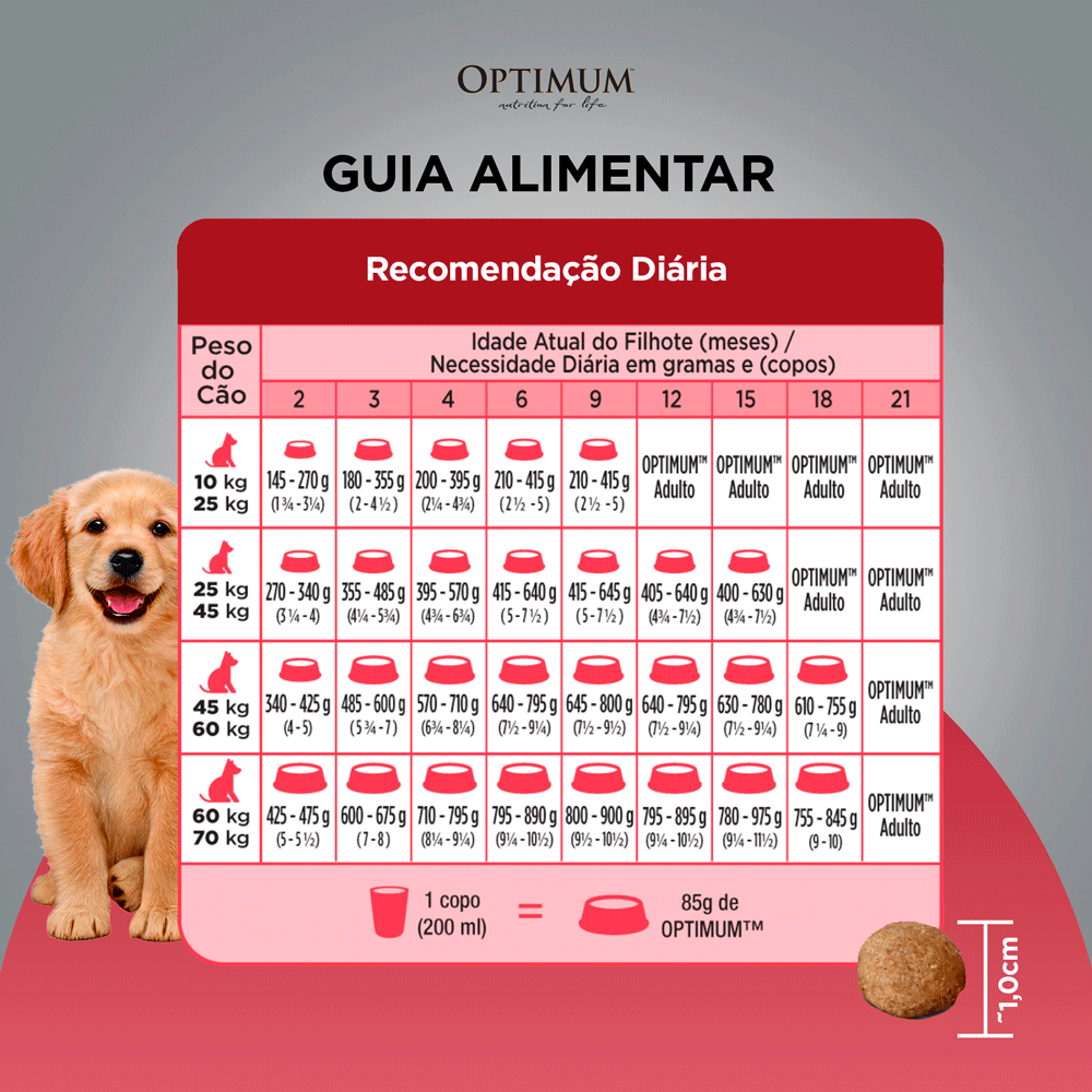 RAÇÃO OPTIMUM PARA CÃES FILHOTES DE RAÇAS MÉDIAS E GRANDES ATÉ 18 MESES FRANGO E ARROZ 3KG
