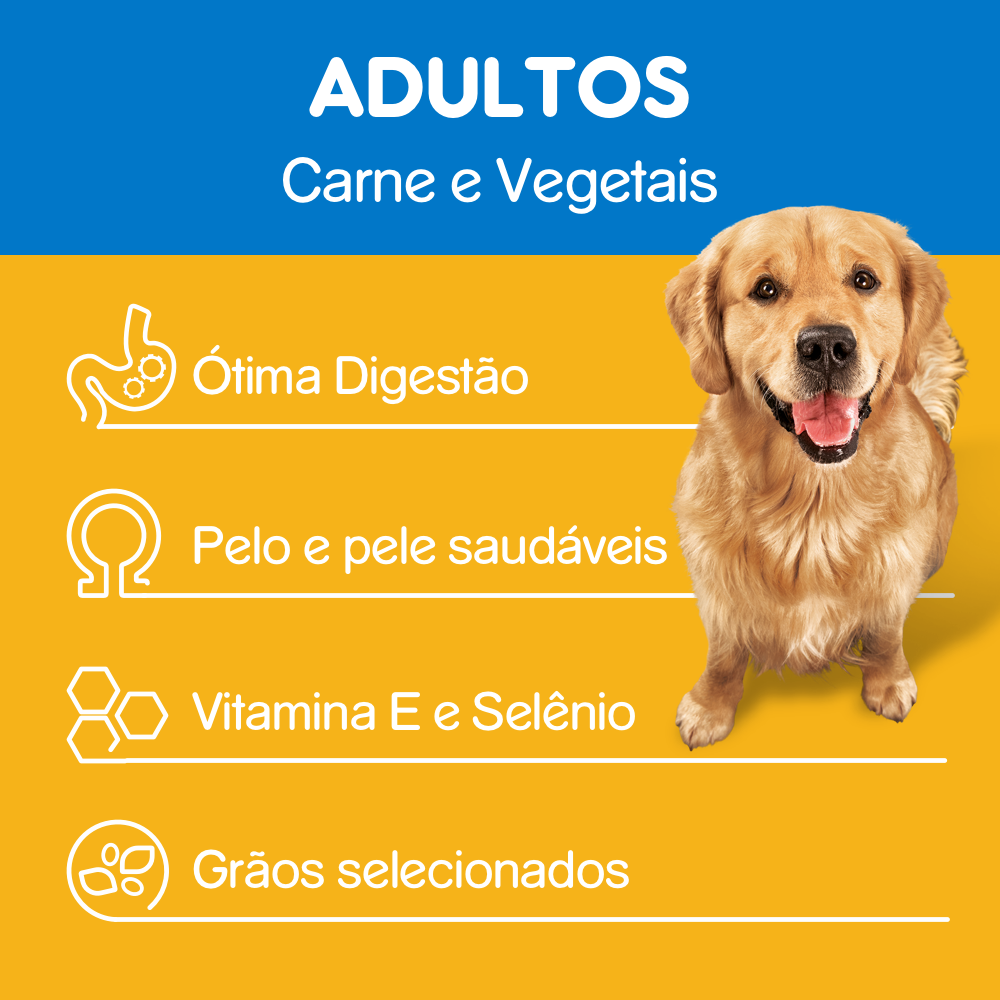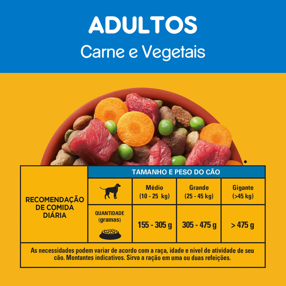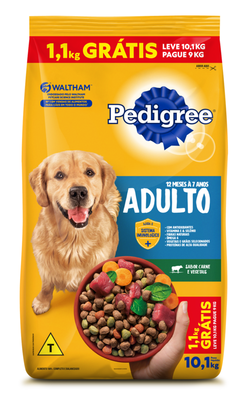 RAÇÃO PEDIGREE CARNE E VEGETAIS CÃES ADULTOS RAÇAS MÉDIAS E GRANDES LEVE 10,1KG PAGUE 9KG