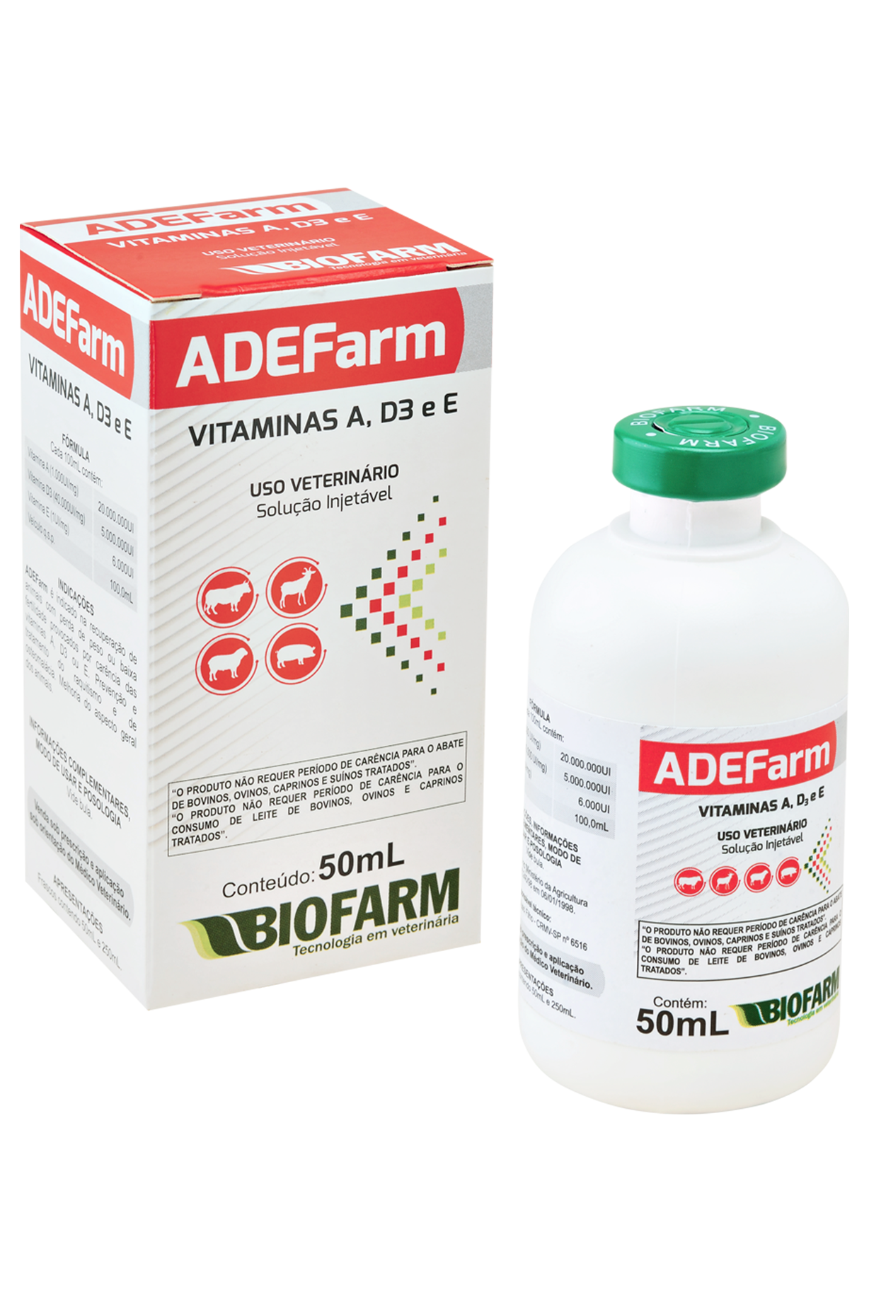 VITAMINAS A, D3 E E ADE FARM 50ML USO INJETÁVEL - BIOFARM